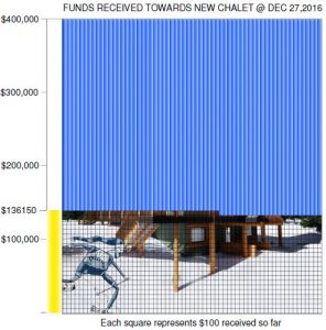 The Chalet expansion committee would like to thank all of the individuals and corporations that have generously donated towards the chalet expansion in 2016. With the generous support we have now reached over 1/3 of our fundraising goal ! The ability to offer tax receipts for donations will continue for 2017, thanks to Cross Country Canada.