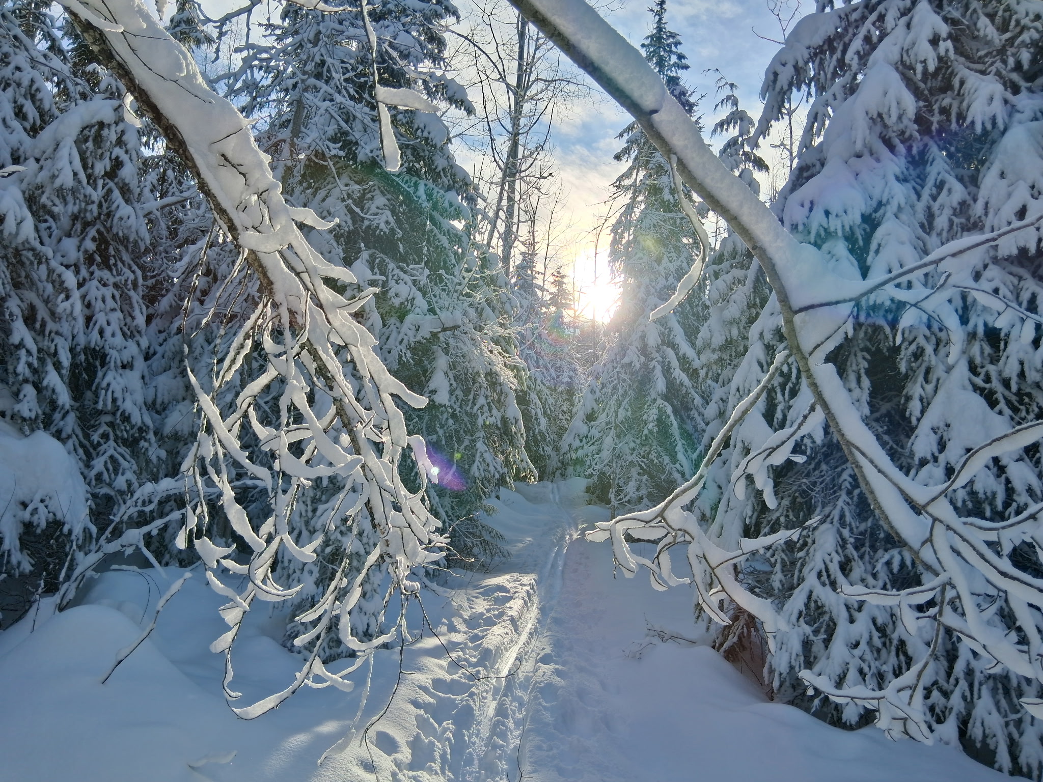 Bilbo’s bog has a bit of open water, but easy to safely get by. Lots of deep snow even in the tree lines, snowing today but still very enjoyable.